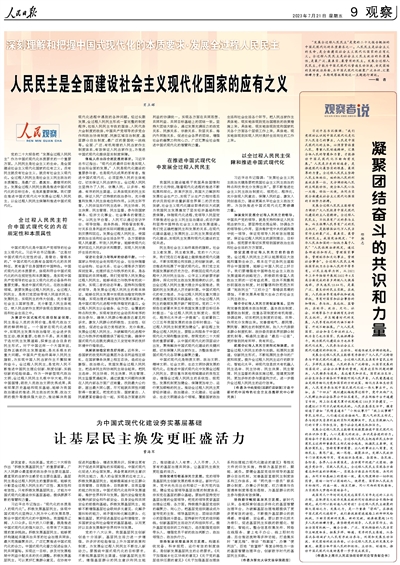人民民主是全面建设社会主义现代化国家的应有之义(人民观察)