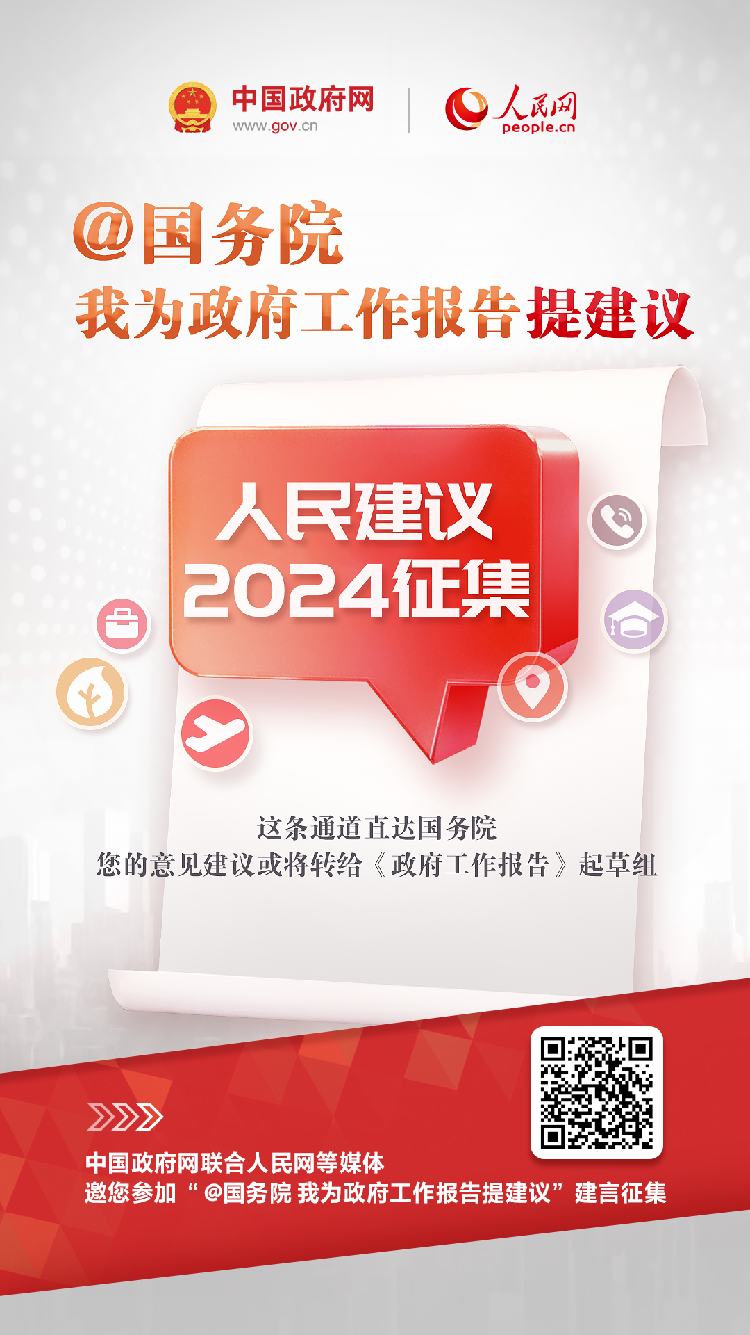 也可以直接点击链接→ @国务院 我为政府工作报告提建议 进行留言