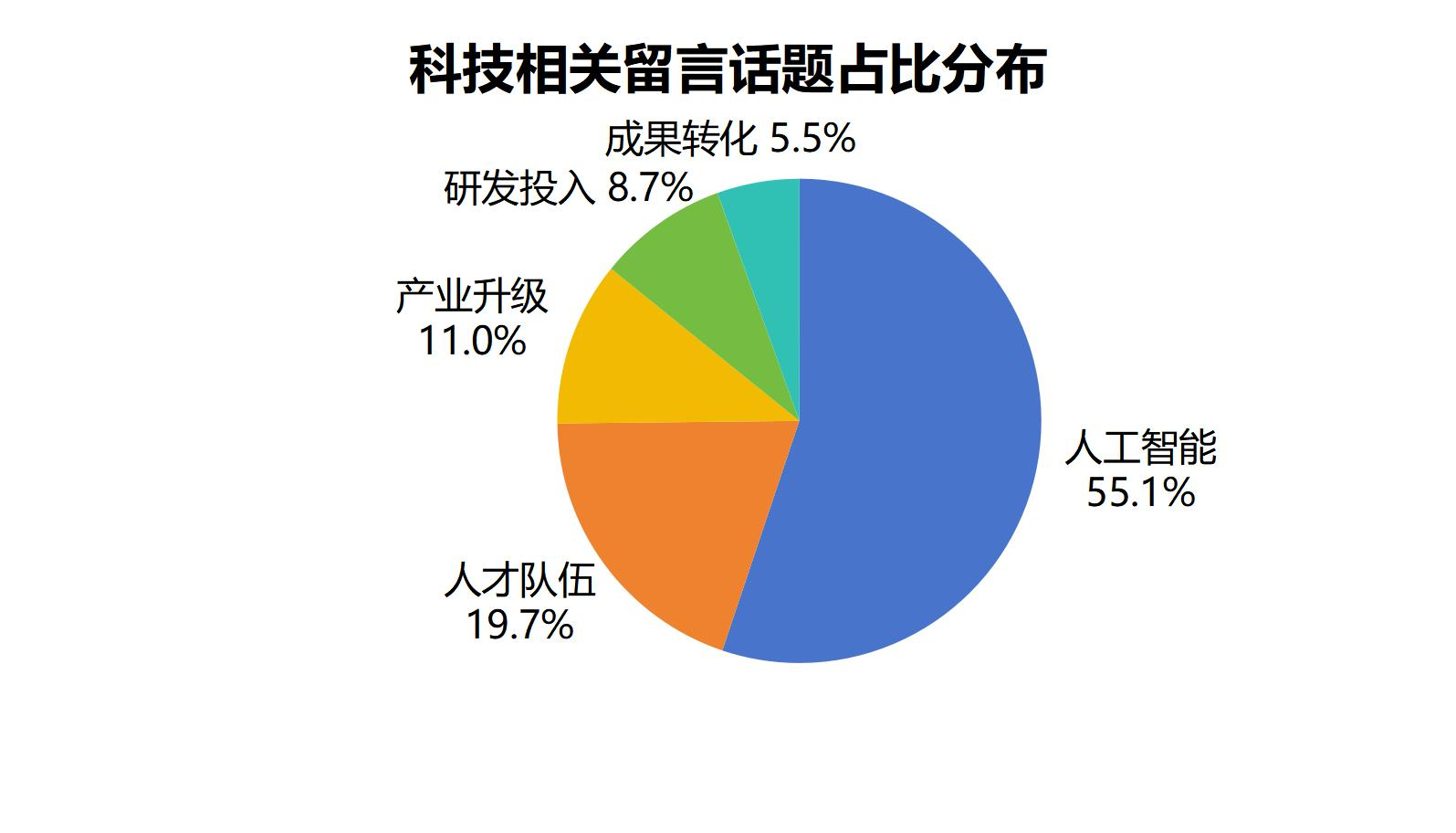在推进科技创新方面,人工智能成为热点话题,其中人工智能大模型应用受到较多关注。群众留言建议加快打通部门间数据平台壁垒,加强人工智能在社会保障、交通治理、教育教学、法律援助等各方面的应用,全方位、深层次提升人工智能在基层治理工作中的应用水平。