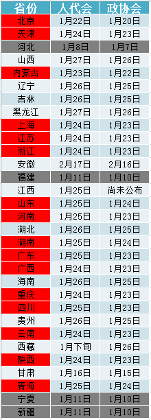 本周16省份密集召开地方两会 聚焦三大热点 资料来源于各省日报及人大、政协网站,内容截至1月20日,实际时间以当地会议召开时间为准(图中灰色为已闭幕省份,红色为本周将开会省份) 人民网北京1月20日电 (王醒)本周,北京、天津、内蒙古、上海、江苏等16个省份两会将开幕,地方两会进入密集召开期。届时,各地将如何规划“十三五”、如何设定201…