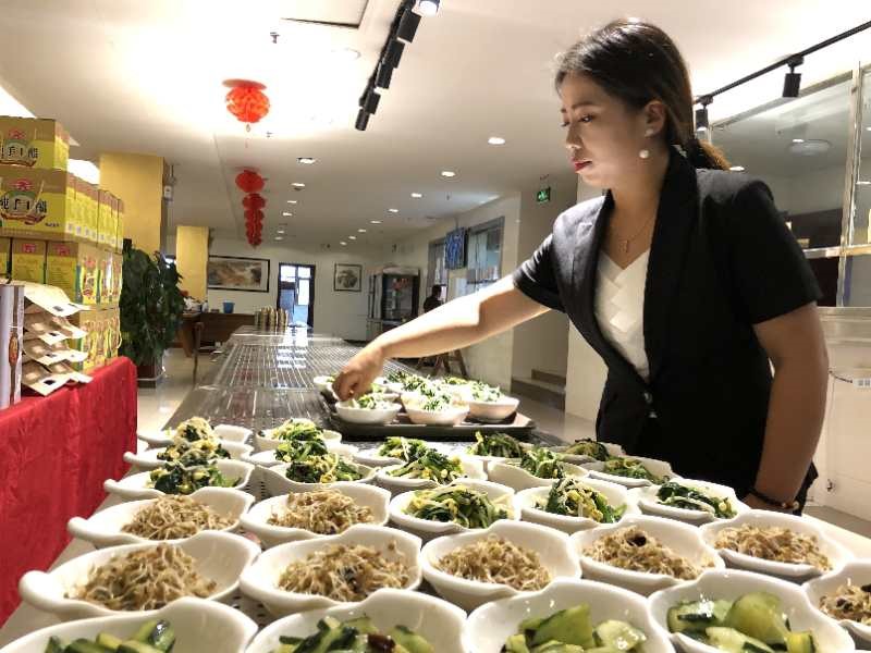 为了避免食物浪费,甘肃兰州盖氏九远香食府特意为食客们准备了小碗菜。 “我们饭店附近公司白领比较多,中午提供的快餐、面点等都是小碗菜,菜价从2元到10元不等,1菜1价,每个窗口也有工作人员进行现场服务,顾客可以根据自己的饭量打菜。每天中午我们会按照日均客流量的50%先行配菜上菜,根据经营情况随时加菜,既能保证顾客吃到新鲜的菜品,又能杜绝浪费食材。”大堂经理桑小凤一边指挥服务员上菜一边向记者介绍,“比如米饭,一份2元钱。有的人饭量小,我们就专门安排一个服务员盛饭,小份米饭分量减半,价格只收1元,既为顾客省了钱,也杜绝了浪费的现象。”