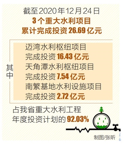 记者1月4日从海南省水务厅获悉,海南2020年开工的迈湾水利枢纽工程、天角潭水利枢纽工程和南繁基地(乐东、三亚片)水利设施工程等国家重大水利工程超额完成年度投资任务。