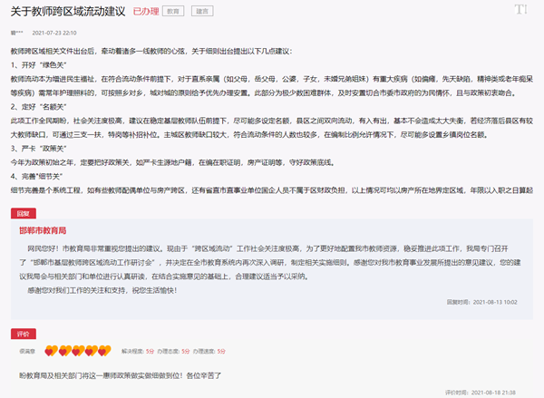 急难愁盼|河北邯郸一教师为跨区域流动建言获回应