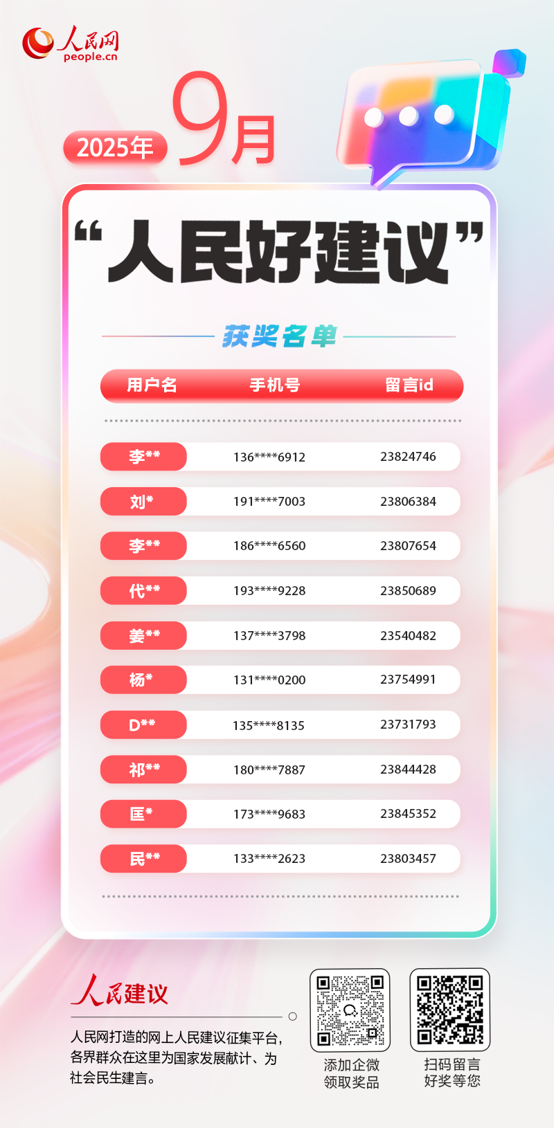 “人民好建议” 9 月榜单出炉 附完整获奖名单